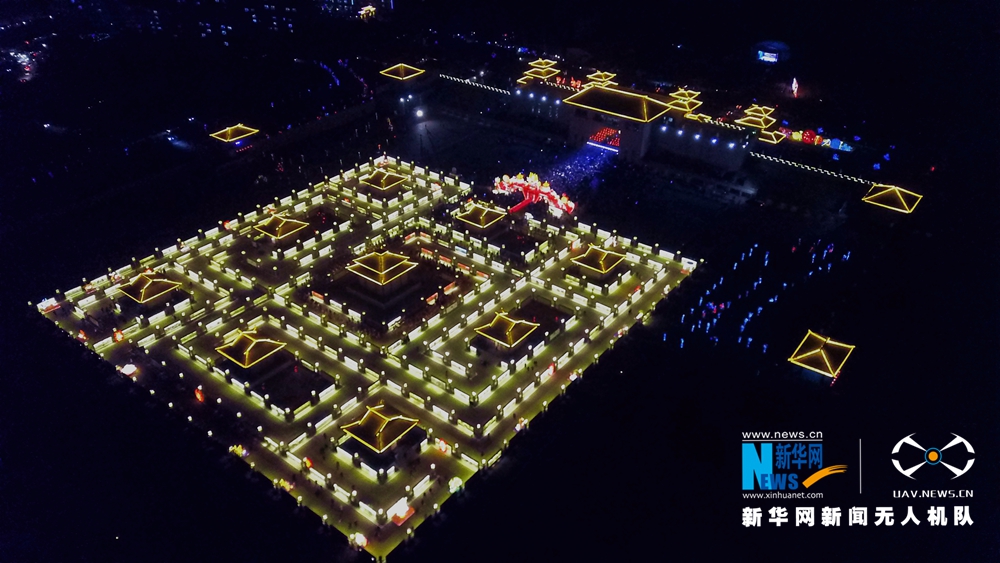 2019年12月4日晚,甘肅張掖甘州區非物質文化遺產九曲黃河燈陣展示亮燈(無人機航拍)。隨著元旦春節臨近,甘肅張及早做好燈陣展示調試工作,確保雙節期間燈陣展示能夠如期展示。據悉,“九曲黃河燈陣”是甘肅張掖古城村一帶流傳了上千年的歷史文化遺產,現為省級非物質文化遺產,“九曲黃河燈陣”被上海大世界基尼斯總部認定“中國規模最大的燈陣”。
