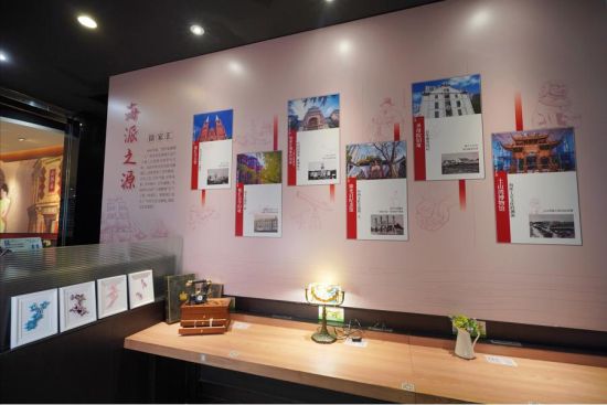 繼續往前,一面巨幅的“海派之源”歷史墻躍然眼前——“徐家匯源”的標志性海派建筑徐匯天主教堂、徐匯公學舊址等新舊對比圖,勾起了觀者的歷史記憶。周圍的旗袍女子圖鑒和融匯了“萬國建筑博物館”的海派印象長墻,更是別具風味。深入餐廳,在“流聲歲月”區,黑膠唱片和明星封面錯落有致地掛在卡座區上方,似乎在將舊時代的輝煌娓娓道來。記者注意到,三三兩兩的消費者中不乏穿著旗袍的年輕女孩,在盡享美食的同時欣賞著桌面別具創意的旗袍文化長圖。