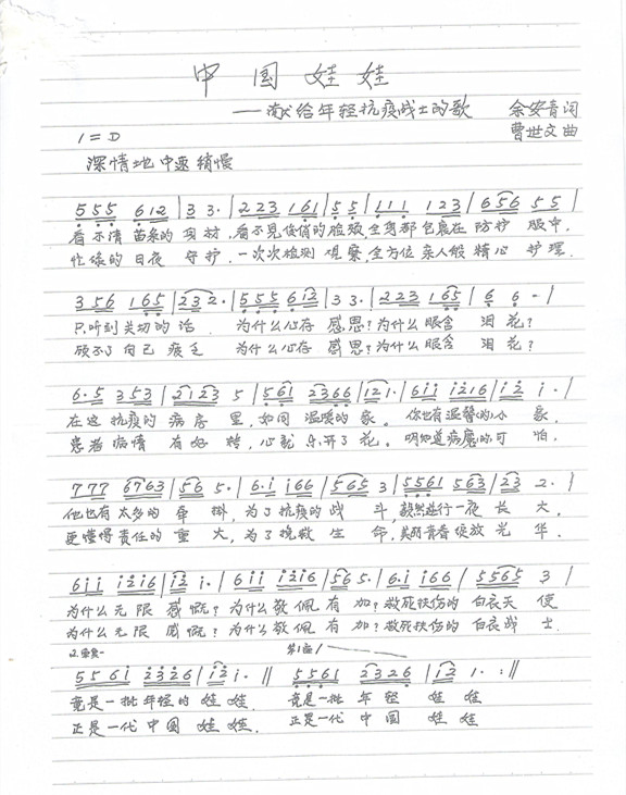 歌曲《中國娃娃》余安青作詞、曹世文作曲