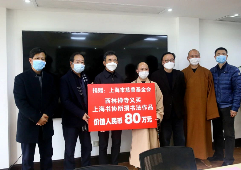 西林禪寺方丈悟端大和尚得聞此事后,和本寺寺管會(huì)主要成員商議,決定拿出80萬元珍藏這批難得的書法作品,上海市慈善基金會(huì)收到此善款后將全部用于助力抗疫及防控用品。