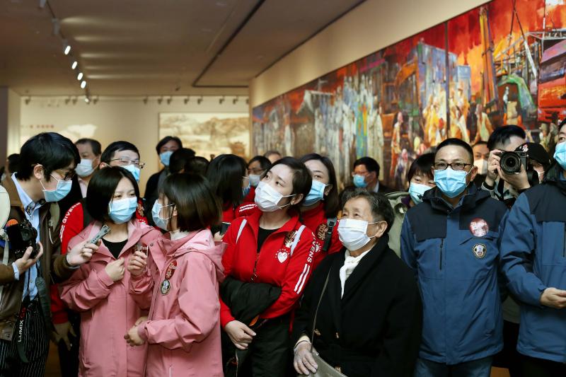 由上海市文化和旅游局、上海市文學(xué)藝術(shù)界聯(lián)合會、上海市衛(wèi)生健康委員會、解放日報社共同主辦的《召喚——上海市抗擊新冠肺炎疫情美術(shù)、攝影主題展》8日正式開展,這也是復(fù)工復(fù)產(chǎn)復(fù)市以后國內(nèi)首個以抗擊新冠肺炎疫情為主題的大型實(shí)體展覽。展覽首日,包括李昕在內(nèi),來自華山醫(yī)院、瑞金醫(yī)院、東方醫(yī)院的一批上海援鄂醫(yī)務(wù)人員,成為這個展覽的首批觀眾。
