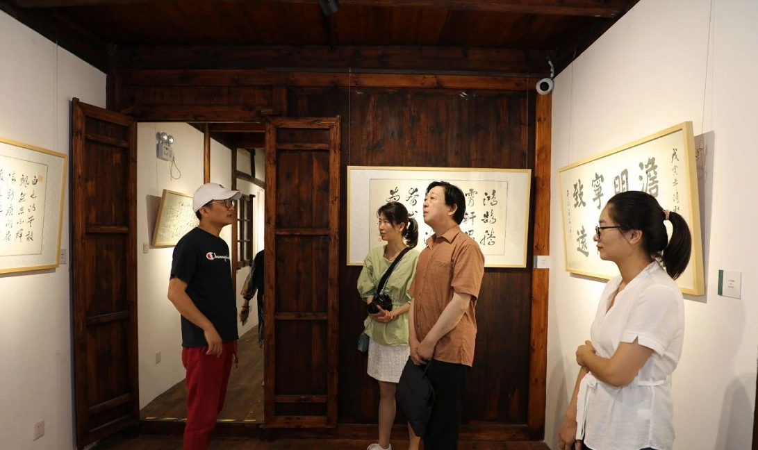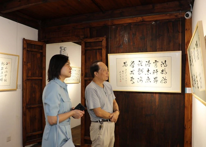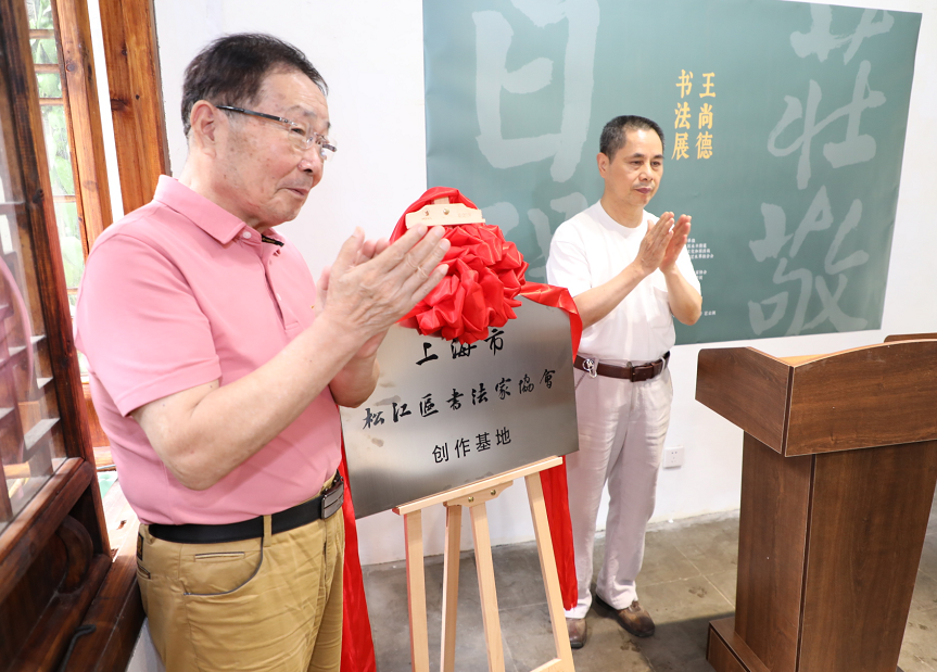 最后,松江區(qū)書法家協(xié)會顧問劉兆麟、何磊為“松江書法家協(xié)會創(chuàng)作基地”揭牌。并由松江區(qū)永豐街道辦事處主任何勁峰宣布展覽開幕。