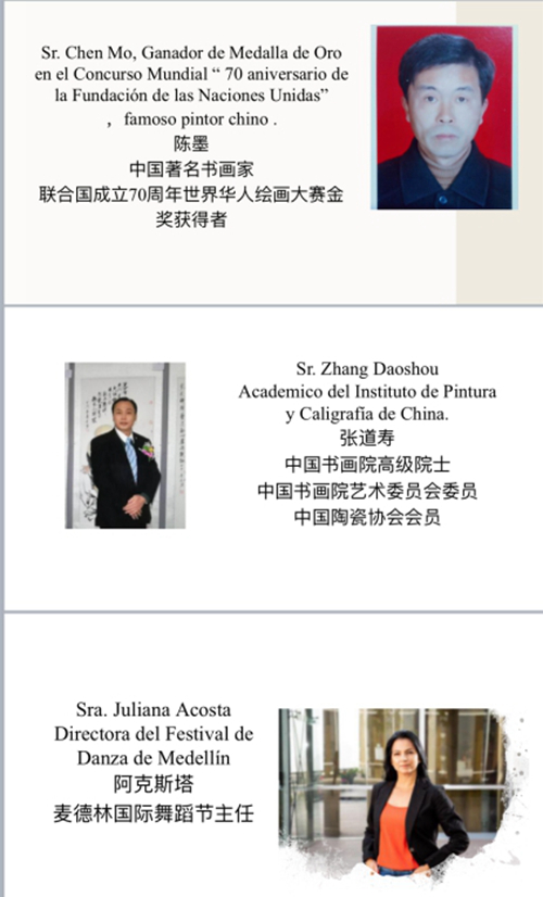 11月26日,由中國駐哥倫比亞大使館、哥倫比亞文化部、“VR中國”共同主辦,藝術中國、中國畫院、羅振玉甲骨文書畫藝術中心、哥中友協、漢語橋俱樂部波哥大站等共同協辦的2020年“VR中國”中哥建交40周年首屆全國繪畫大賽線上頒獎典禮成功舉辦。中國駐哥倫比亞大使藍虎、文化參贊朱曉燕,哥文化部長巴斯克斯,中國教育部科技委主任、前副部長趙沁平院士,哥前旅游部副部長、前駐華大使魯埃塔等30名中哥著名文化藝術大伽評委及2000多名觀眾分別通過“VR中國”、Zoom,Facebook,Instagram、麥德林孔院等多媒體平臺,出席線上頒獎典禮。早在11月1日起,觀眾即通過中哥虛擬繪畫展廳及多媒體系統紛紛熱評、點贊,點擊量已達80多萬,忠粉13萬。僅三位最佳人氣獎選手即囊括12萬張選票,為今年中哥建交40周年系列慶典活動又增添了一道亮麗的風景線。