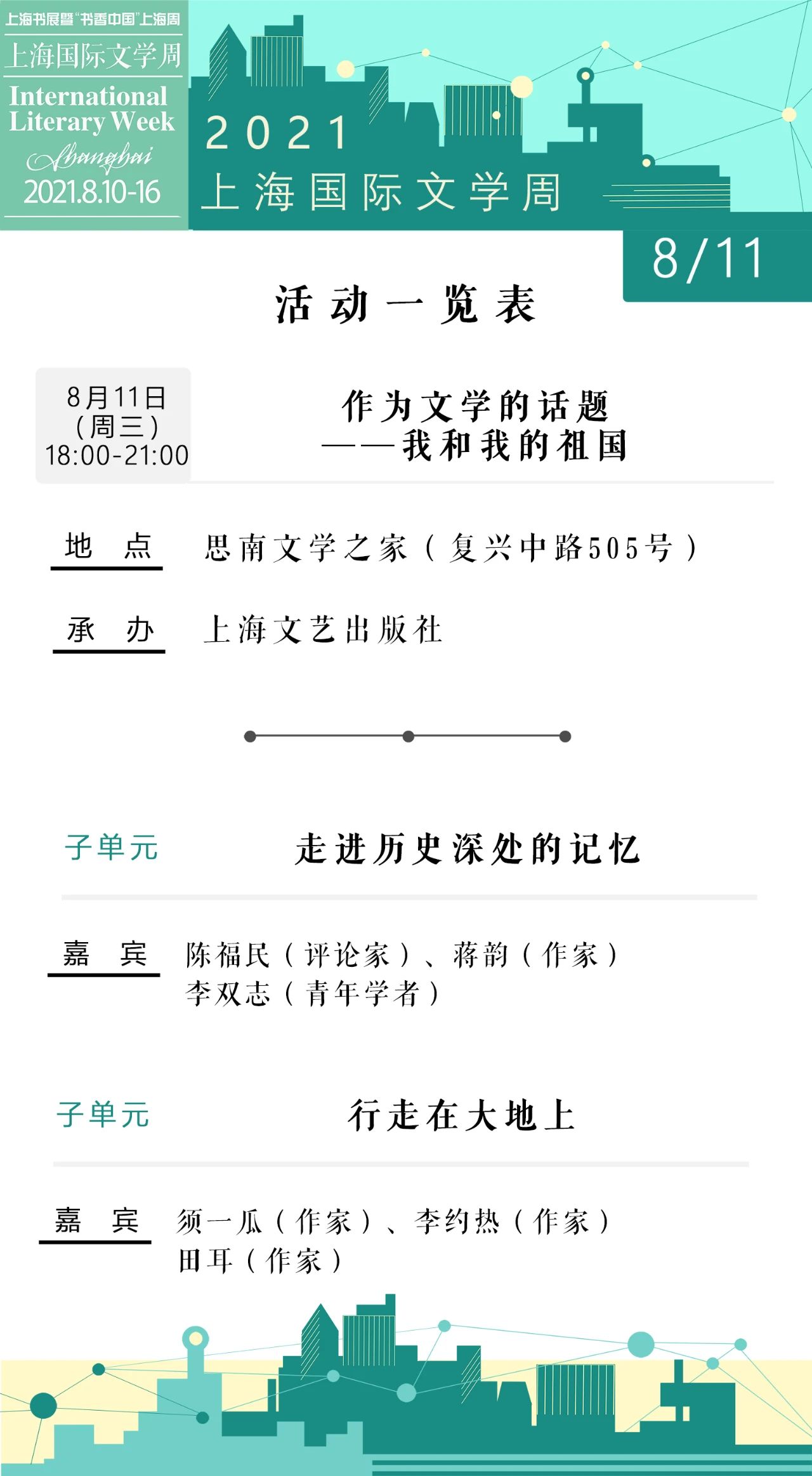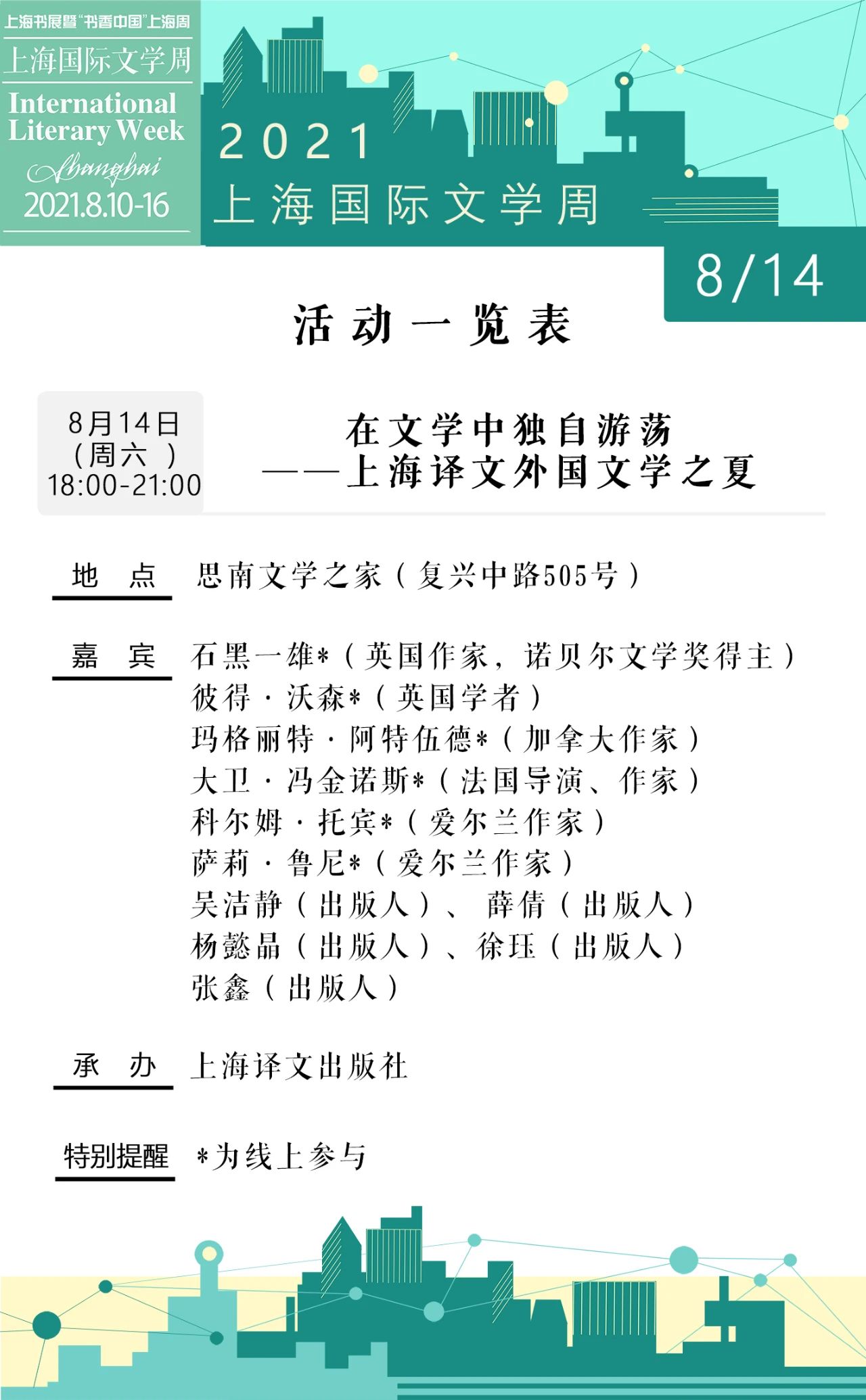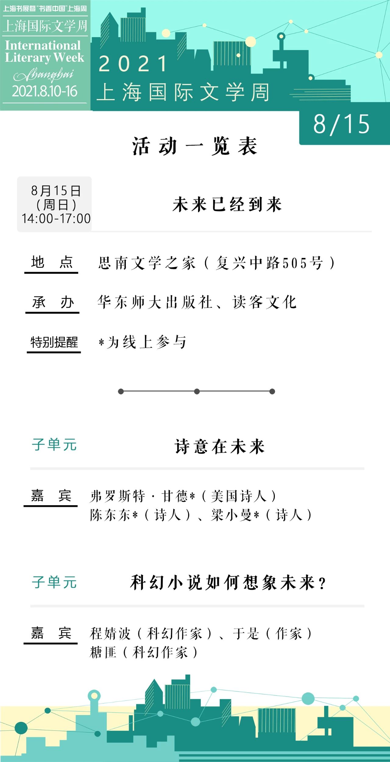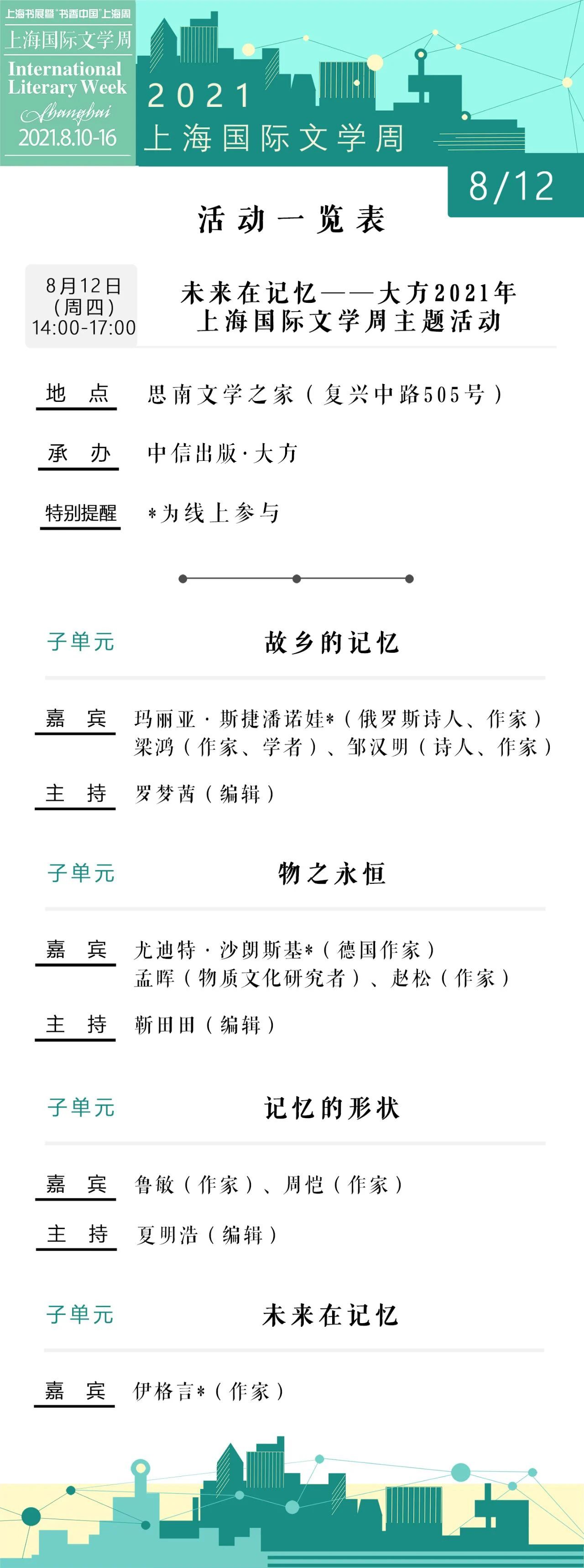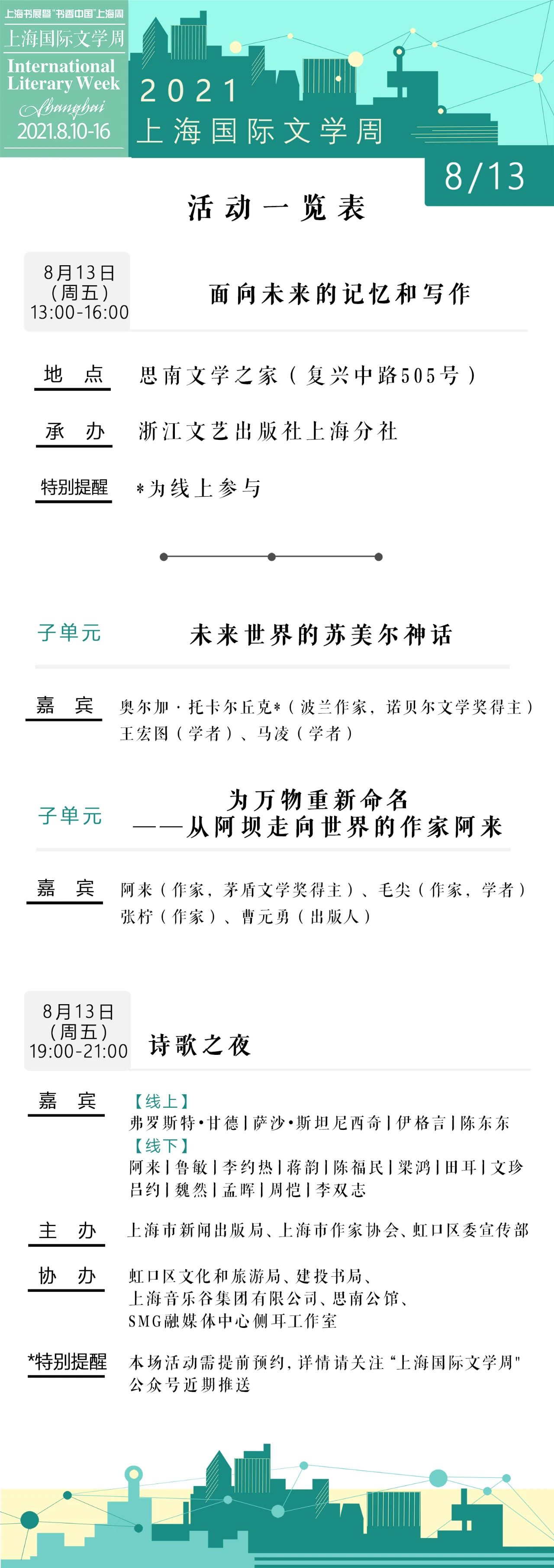 2021上海書展·上海國際文學周活動總表