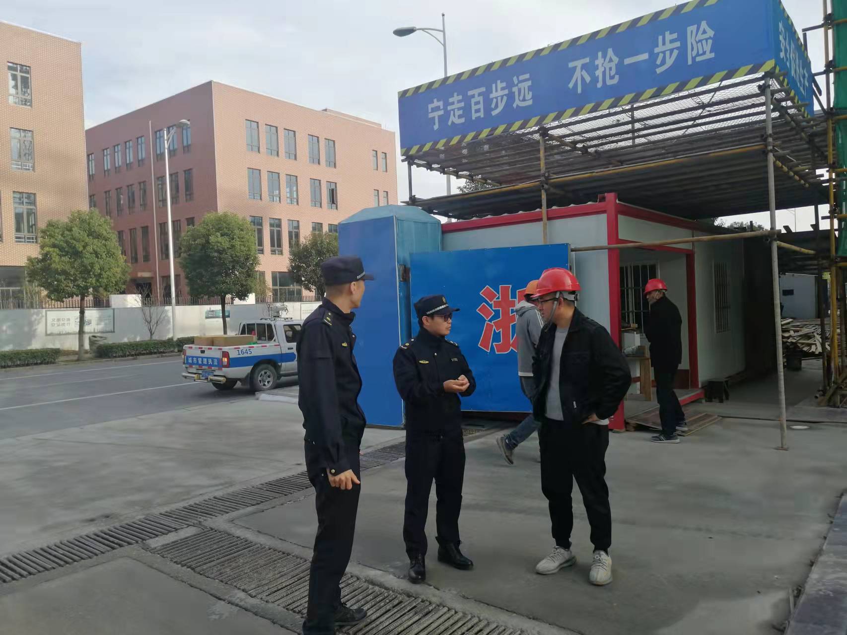 松江區(qū)經(jīng)開區(qū)城管深入工地治理揚塵,保障進博空氣質(zhì)量