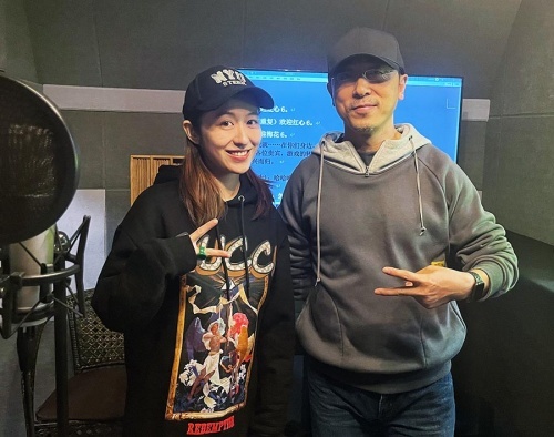 編劇導演佟童與聲音出演寧理在錄音棚