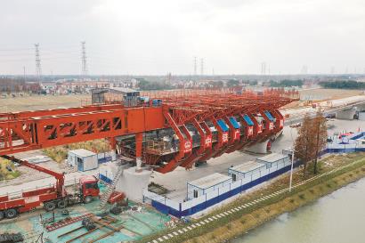??滬昆改線斜塘特大橋位于上海市松江區境內,全長7769米,整座橋特殊結構多,安全風險高,施工難度大。據介紹,傳統的支架法施工機械化程度低、安全風險高,而移動模架可在已澆筑的橋墩及梁上行走,被稱為“移動的橋梁預制工廠”,是中等規模橋梁代替架橋機架梁的最佳方案。