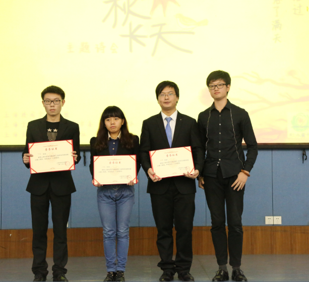 三等獎(jiǎng):上海城建職業(yè)學(xué)院青竹文學(xué)社的石佳鑫,朗誦和創(chuàng)作,華東師范大學(xué)停云文學(xué)社的馬思蒙,朗誦和創(chuàng)作,上海杉達(dá)學(xué)院靈犀文學(xué)社的劉奕帆,朗誦和創(chuàng)作