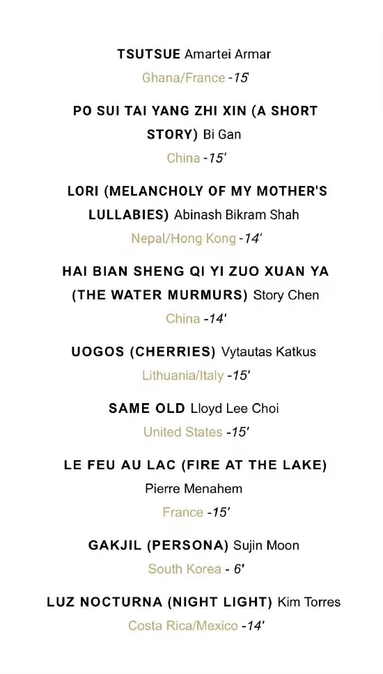 本屆戛納電影節短片競賽單元共有140個國家,3500余部作品參賽,兩部華語短片《海邊升起一座懸崖》、《破碎太陽之心》最終脫穎而出,和其他7部入圍短片共同參與最終角逐。