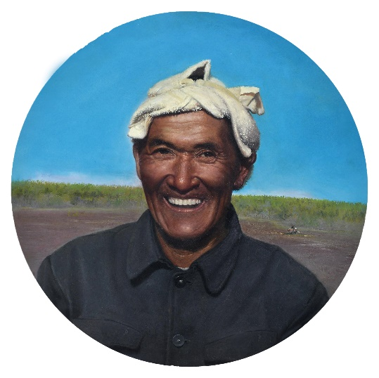 趙關(guān)鍵的油畫《芒種》是一幅人物肖像作品,畫中農(nóng)民皮膚黝黑、笑容燦爛,樸實(shí)的面龐與遠(yuǎn)景的藍(lán)天、土地相互映襯,趣味十足。
