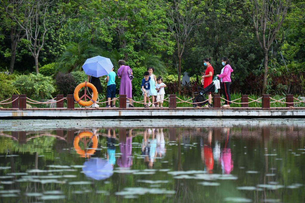 市民群眾在茅洲河畔的燕羅濕地公園里遛彎(7月8日攝)。記者梁旭 攝