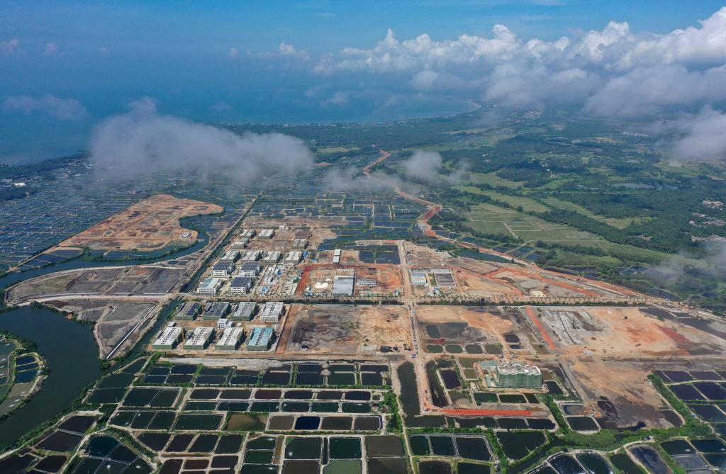 這是正在建設中的文昌馮家灣現(xiàn)代化漁業(yè)產(chǎn)業(yè)園(無人機照片)。記者郭程 攝