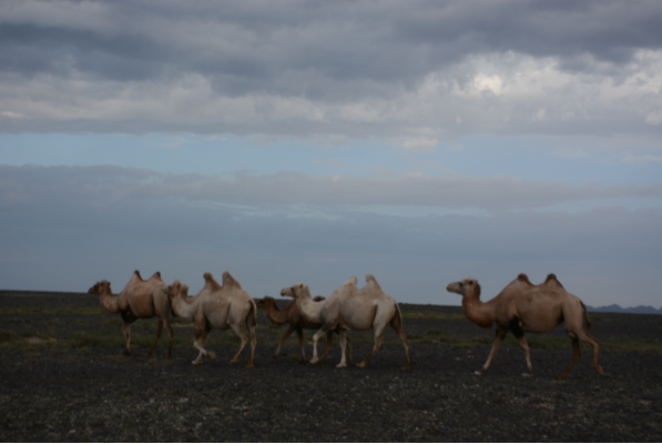 像巨浪,像群峰,像流云,像陣風。延首伸眉,地拄天撐。堅韌拔拔,忍辱耿耿。恣遐曠于嘶嘯,屯脂肪于雙峰。迎旭日而撒歡,送晚霞以披星。酷熱、嚴寒,從容不迫而所向;視力、聽覺,御防謀略而激靈。尋泉脈、喝咸水,跋履山川;吃百草、辨天候,交貫縱橫。至于塵暴滾滾,笑傲飛舞之凌勢;狂飆嗖嗖,坦然肆虐之頻仍。至若結伙列隊而和諧,尊卑有序以照應矣。