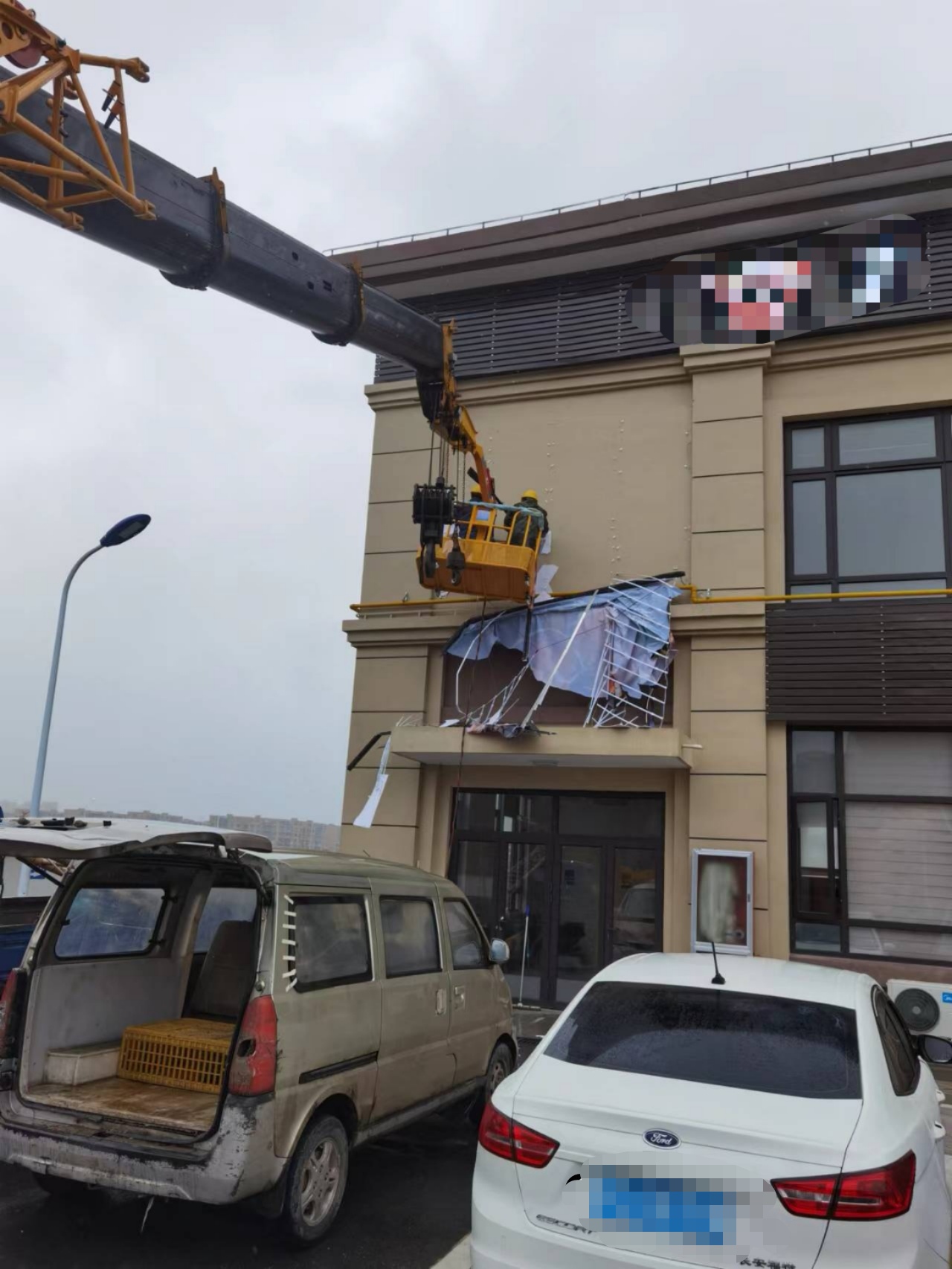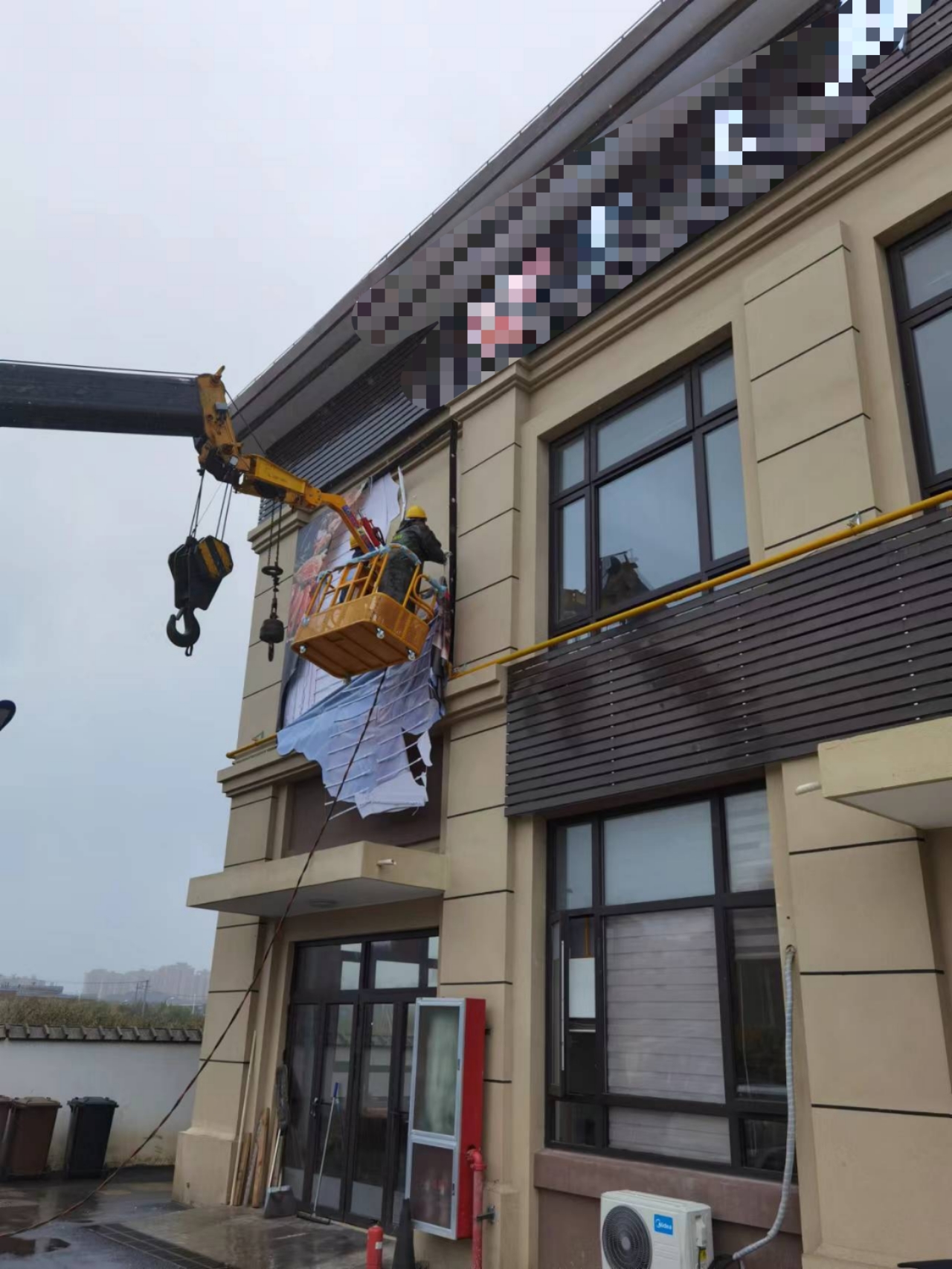 由于此廣告處于樓宇外墻高處,拆除過程中,執法人員在地面設置安全員,專業人士搭乘吊籃進行拆除,他們先切斷LED電源開關,拆除線路后再遵守安全操作流程進行拆除,順利完成拆除作業。