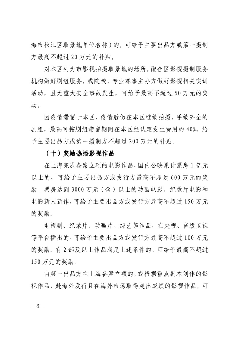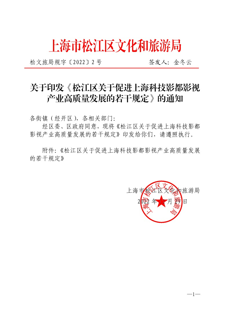 松江區關于促進上海科技影都影視產業高質量發展的若干規定的通知