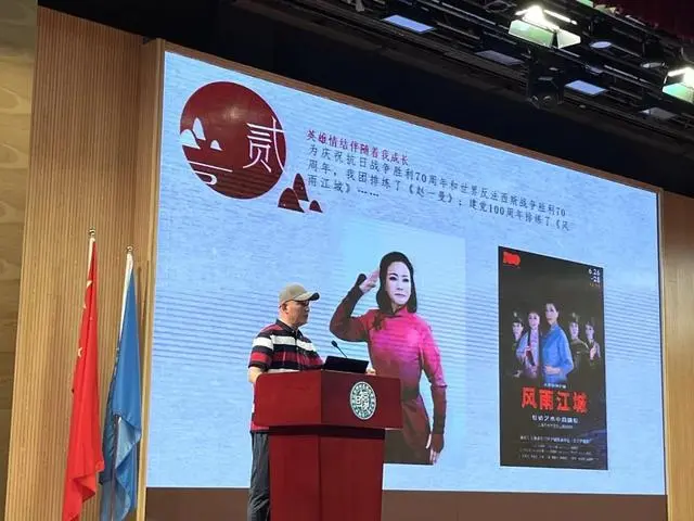 在復旦中學,黃愛忠以《黨的光輝照我心》為主題,圍繞“學說上海話”“英雄情結伴隨著我成長”“跨越難度才能塑精品”“梅花香自苦寒來,一份付出一份收獲”四個方面,現場為學生們介紹了自己與滬劇的情緣、敘說了滬劇中的紅色經典和演出故事,并與學生們開展互動。從一張珍貴的照片到優秀滬劇作品《趙一曼》的誕生,背后潛藏著哪些故事;講述感人社區生活的《小巷總理》的主角原型,是長寧區虹儲居民區黨總支書記朱國萍……黃愛忠在講座上娓娓道來,還現場高亢地演唱了《紅燈記》的一個選段:“…昂首看,看到了抗日烽火遍地燃,深山密林紅旗揚……”有學生在講座結束后感慨,自己是第一次聽滬劇,原來是這樣的震撼人心。