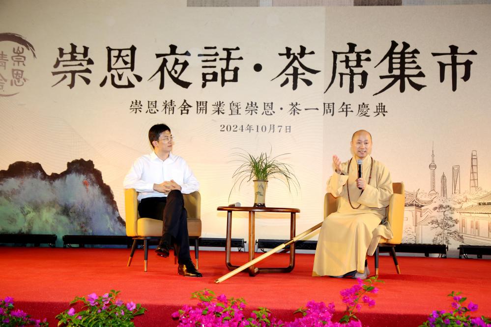 在專家訪談環(huán)節(jié),上海市社會(huì)主義學(xué)院城市民族和宗教研究中心副主任程洪猛教授與悟端大和尚就“佛教中國(guó)化:佛教文化的當(dāng)代闡釋”這一主題展開了深入訪談。兩位師者既幽默風(fēng)趣,又鞭辟入里的對(duì)話,讓現(xiàn)場(chǎng)觀眾在增長(zhǎng)知識(shí)的同時(shí),領(lǐng)悟到禪茶一味、寧?kù)o悠遠(yuǎn)的禪機(jī)與意境,以及禪文化以正心、正念、正行弘法濟(jì)世的基本精神,收獲了教益與啟迪。
