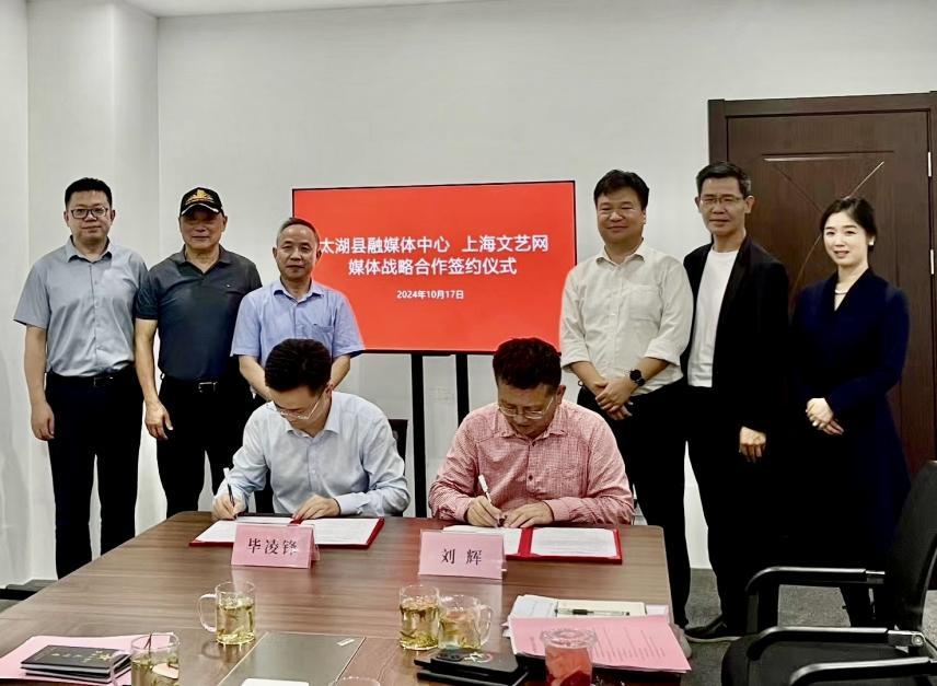 在上海文藝網融媒體中心,雙方細致籌劃了2025年太湖縣春節聯歡晚會上海分會場及上海太湖經濟文化促進會年會計劃,并深入探討了深化滬太交流合作事宜。在促進會領導王依群、謝政、趙誠、陳阜東、甘金霞及趙偉部長的見證下,上海文藝網與太湖縣融媒體中心簽署了戰略合作協議,太湖縣融媒體中心將在上海文藝網設立首個駐外聯絡中心。