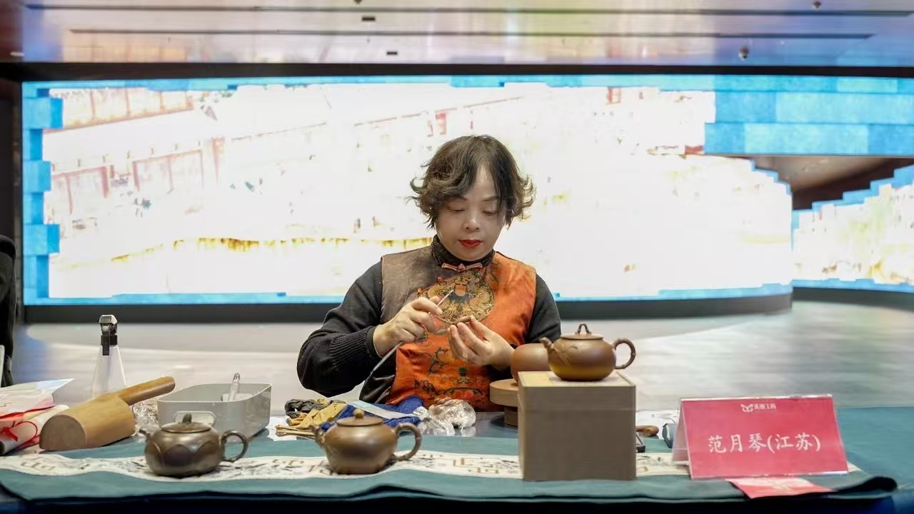 2024年赴深圳參加中殘聯、全國婦聯聯合項目“美麗工坊”深圳文博會巡展,現場展演“宜興紫砂陶”制作技藝