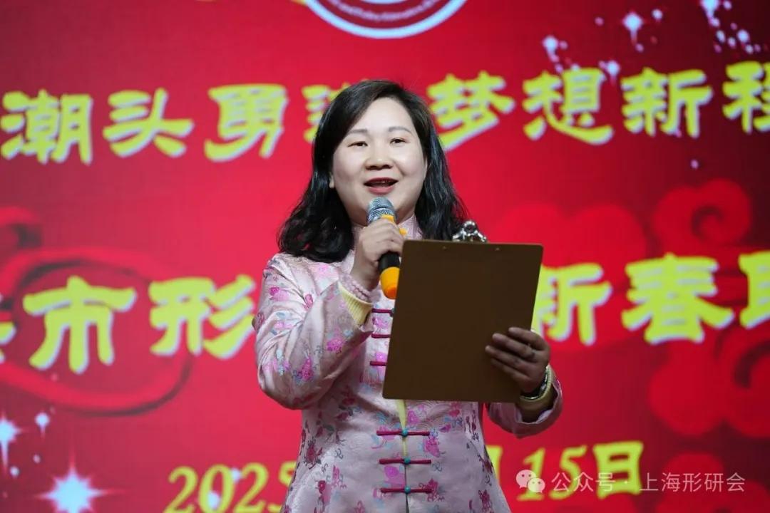 首先,會長沈明達教授上臺致新春賀詞。他說,今天的聯歡會是形研會成立37年來第一次舉辦的迎新春活動,這將是一個別開生面的新春聯歡會,是一次有益的嘗試;也是本會第七屆理事會上任后旨在激勵人心、承優創新,開啟新征程、再攀新高峰而創辦的一次大型會員活動。半個多月前形研會換屆成功,選舉產出了第七屆理事會新班子,再過半個月將迎來2025年春節,我們通過舉辦聯歡會以良好的狀態、積極的姿態和樂觀的心態迎接新春的到來。在此,代表形研會理事會和黨工組向各位會員表示新春的祝福,祝大家新春快樂、事業順利、身體健康!沈會長說,過去的一年,在大家的支持下,形研會各項工作躍上新的臺階,再次獲評上海市優秀學會。2025年是值得期待的一年,形研會將積極推進創新發展,更好服務會員單位和會員,相信一定能承優立新再攀高峰,譜寫新時代形勢政策教育高質量發展新篇章。最后,沈會長祝老年會員身體健康,祝中年會員事業有成,祝年輕會員天天向上,祝形研會工作在2025年更上一層樓,取得更加優異的成績。