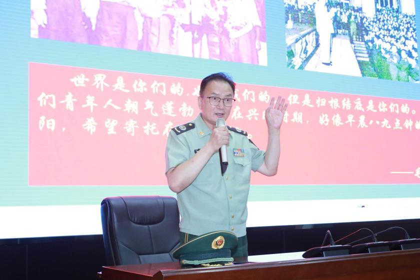 傍晚6時許,擁有35年軍齡的王杰斌教授身著軍裝,以“時代家庭責任”為主題,為同學們講述了從八國聯軍侵華到新中國成立,半個多世紀以來從救亡圖存到改革開放,中華民族偉大復興波瀾壯闊的偉大征程,他深情講述了爺爺經歷的艱苦歲月,父輩建設邊疆的默默堅守,更分享了自己在新疆戍邊,參軍報國的真切體會和感悟。當那些關于情誼與使命的故事在夜色中流淌,動情處,孩子們的眼中淚光與信念交織。分享會最后,王教授深情寄語,話語鏗鏘:“每一個時代都有一個時代的歌謠,也造就著屬于那個時代的英雄,中國的未來是你們的,世界的未來也是你們的,現在你們的任務是好好學習,長大了才能更好地報效祖國、建設祖國,我相信你們,就像相信我的祖國一樣。”真摯感人的諄諄教誨告誡同學們要珍惜今天來之不易的美好生活,將“為中華之崛起而讀書”的信念火種深植于每一位同學的心田。