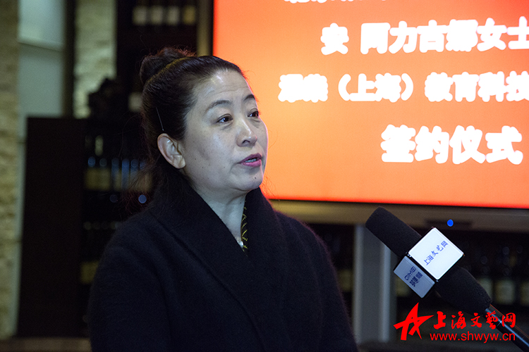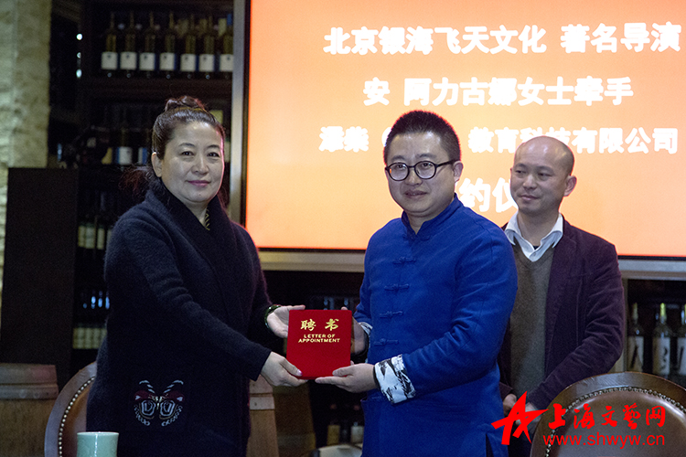 上海文藝網 沈彤 陳剛 :2月25日早上11點18分,北京銀海飛天影視文化有限公司獨立制片人、著名蒙古族導演安阿力古娜女士,在上海最美小鎮一一泰晤士小鎮與天馬論道、添柴教育董事長王雪先生及添柴董事們進行了一場戰略合作牽手簽約儀式。