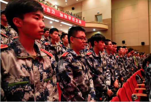 空軍上海某基地中校作為此次作訓(xùn)團團長發(fā)言。他提到,軍訓(xùn)是大學(xué)生個人提高身體素質(zhì)的必要過程,是學(xué)校加強大學(xué)生國防教育的重要途徑,是國家實現(xiàn)強軍夢的重要一環(huán)。希望同學(xué)們在此次軍訓(xùn)中能夠發(fā)揚軍隊艱苦奮斗的優(yōu)良傳統(tǒng),要以飽滿的熱情投入到訓(xùn)練中去,圓滿完成訓(xùn)練任務(wù)。