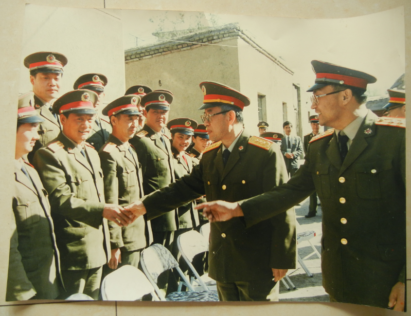 奏諧音,證本念,匯交響,真本愿。年深歲久,軍銜赫赫;穿越時光,軍徽閃閃。甲午出生于石家莊,甲寅應征西陲邊關。載著夢想,盤馬彎弓;肩負赤誠,帷幄謀篇。跨越巍巍三山,襟扉敞開;暢游茫茫兩盆,鵬程翼展。受命政治委員,無竊竊之私,其履乃耀;兼任黨委書記,有堂堂之責,其涯乃粲。乃爾回首流往,始之點滴;梁繞余韻,匯之浩瀚也。
