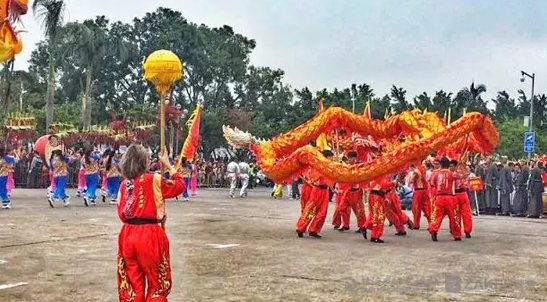 群龍共舞,氣勢恢宏,首先威武亮相的是陣容鼎盛的龍隊方陣,表演單位為蓮洲鎮(zhèn)和乾務(wù)鎮(zhèn)。龍隊方陣由蓮洲鎮(zhèn)的金、銀龍和2條舞火龍,以及井岸鎮(zhèn)的2條小龍構(gòu)成。演員人數(shù)達(dá)150多人。其中蓮洲金、銀龍共70多人;蓮洲舞火龍40多人;井岸小龍近30人。在整個龍隊方陣中,由金、銀龍擔(dān)任點睛任務(wù),三種不同類型的龍互相穿插,真可謂龍騰霞蔚,氣勢如虹。
