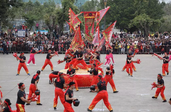 活動長達(dá)兩個多小時。在前期策劃工作中,組委會多次召開會議,以彰顯本土文化特色為原則,力求展演充分烘托氣氛,規(guī)避單調(diào)隨意,做到群眾喜聞樂見,并據(jù)此多番修改,最終確定展演節(jié)目,