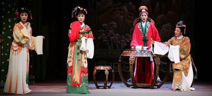越劇長(zhǎng)于抒情,以唱為主,聲音優(yōu)美動(dòng)聽(tīng),表演真切動(dòng)人,唯美典雅,極具江南靈秀之氣;多以才子佳人題材的戲?yàn)橹鳎囆g(shù)流派紛呈。越劇主要流派有袁(雪芬)派、范(瑞娟)派、尹(桂芳)派、傅(全香)派、徐(玉蘭)派、戚(雅仙)派、畢(春芳)派、王(文娟)派、張(桂鳳)派、陸(錦花)派等。代表劇目包括《紅樓夢(mèng)》、《情探》、《打金枝》、《碧玉簪》、《九斤姑娘》、《盤(pán)妻索妻》等。