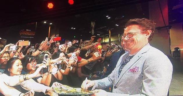 現場聚集7000名粉絲,并搭起2層樓高舞臺,儼然演唱會規格。導演喬·羅素客串當起主持人,訪問第一次到新加坡的小羅伯特·唐尼,小羅伯特·唐尼贊新加坡粉絲的熱情令他印象深刻。他還故意提及大家最關心的結局問題,說他猜最后能打倒大反派薩諾斯的,應該是“鷹眼”杰瑞米·雷納:“因為他是唯一沒出現在海報上的,應該最強、一個就打敗超級反派薩諾斯。”