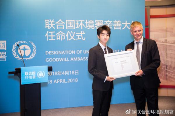 王俊凱被任命為聯(lián)合國環(huán)境規(guī)劃署親善大使
