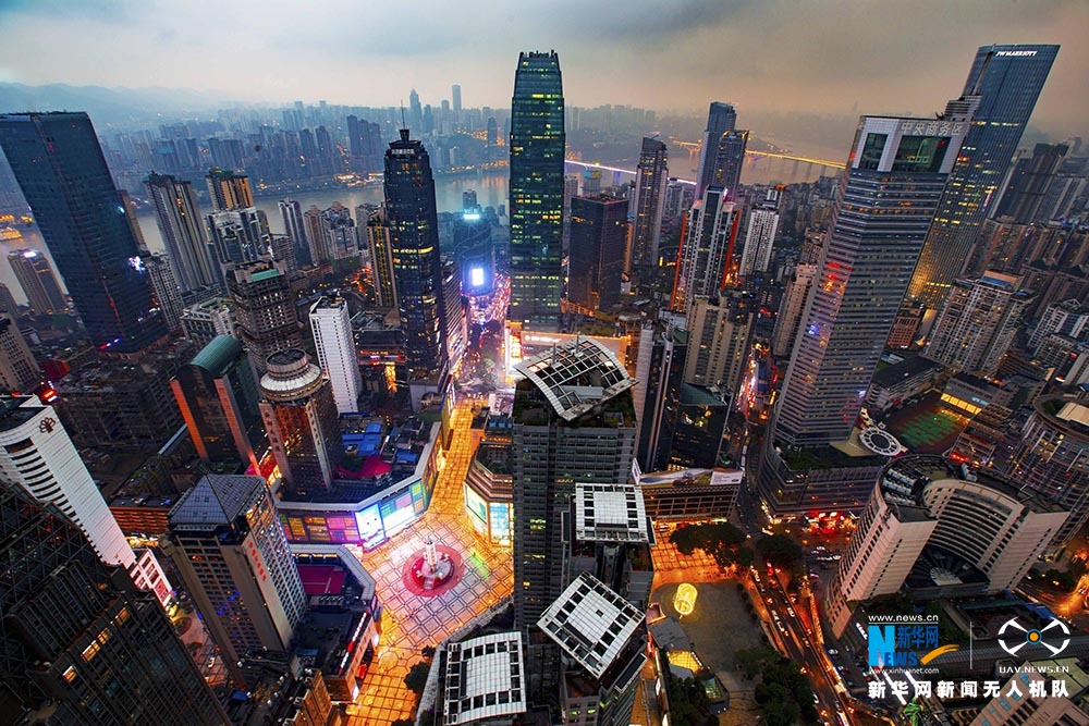 長江橫貫重慶,流經679公里。重慶作為“一帶一路”與長江經濟帶的聯結點,積極融入和努力推動長江經濟帶發展,既是加快發展的重大機遇,也是重要的歷史擔當。圖為無人機航拍重慶解放碑。