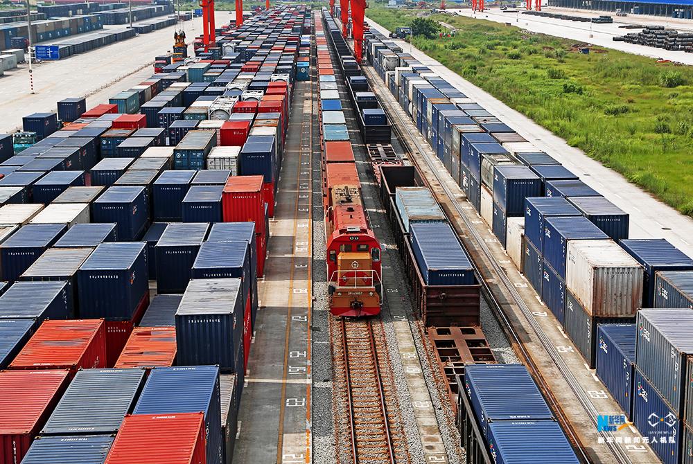 圖為無人機航拍中歐班列起點站——重慶沙坪壩團結村中心站。2011年3月19日,一趟滿載IT產品的班列從這里出發,經阿拉山口出境,最終抵達德國杜伊斯堡,拉開了中歐班列的序幕。隨著開行城市的增多,以及運載貨物的日益豐富,中歐班列在“一帶一路”中的意義也愈發重要。