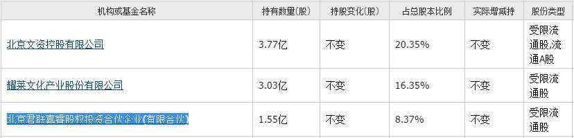 可能很多人不怎么了解文投控股,但它現在的確是影視行業不可忽視的一家上市公司。文投控股有國資背景,實際控制人是北京市國有文化資產監督管理辦公室(北京市政府直屬機構)。文資辦下屬的北京文資控股是文投控股直接大股東,第二、第三大股東分別是耀萊文化產業股份有限公司和北京君聯嘉睿股權投資合伙企業。