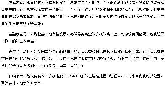 因為樂視影業算是優質資產,孫宏斌的融創入股樂視后,通過轉讓、拍賣等方式,有意把樂視影業和樂視網做了剝離,后樂視影業更名樂創文娛,獨立運營,估值已經降到了30億左右,連后起做電影的開心麻花(估值70億)都不如。