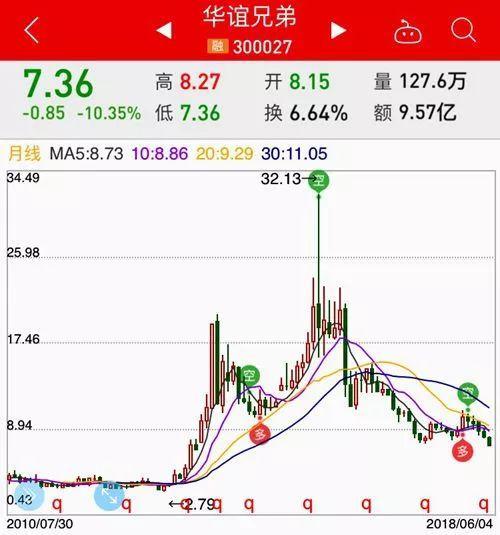 在2015年中國牛市的時候,華誼500億市值的目標確實達到過,1000億也有過希望(最高的時候控股的華誼兄弟加上參股的掌趣科技總市值超過800億),但如今,上市快九年,市值又跌回了200億,股價7.36元,盤子越變越小。