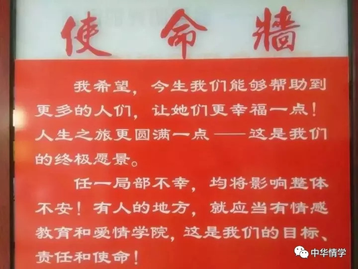 【我們的目標:打造中國首家頂級婚戀情商、兩性關系專修學院和中國婚戀培訓、情感教育的黃埔軍校,推動中國全民普及基礎型情感教育】