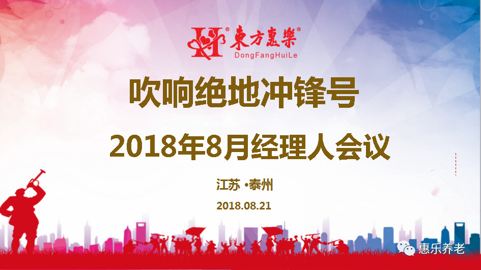 8月21日,東方惠樂“吹響絕地沖鋒號——8月經理人工作會議”在總部召開,東方惠樂董事長陶金海,副總裁兼智慧傳承創新學院院長李欣隆,健康科技副總裁兼市場總監李雪珍,創新事業中心首席運營官陳愛民,首席技術官馮佳,東方惠樂江蘇、上海各地社區老年服務中心主任和在總部各部門總監參加會議共謀發展之道。