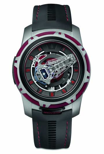 雅典表Innovision2任何人如果想度量時間流逝的長短,必須先將其分成相等的時段,然后精心翼翼地計算。無論是電子表或者機械表,其功用都是一樣。在傳統時計里,擒縱裝置是負責這項工作:換言之,擺輪和游絲的擺動必須是一致的。