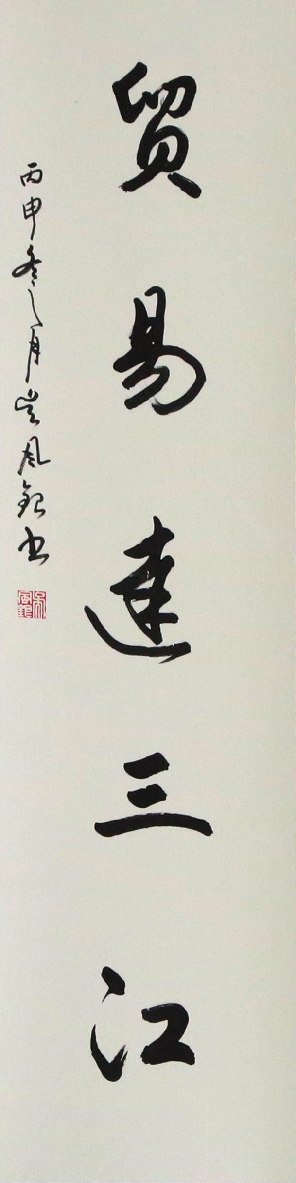 2016年11月12號六尺對開書法“風生水起”書法被格林納達駐聯合國大使劉遲先生收藏。