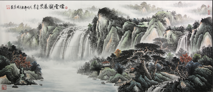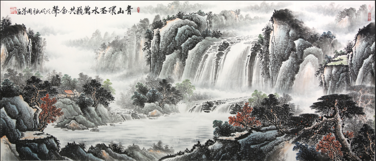 2016年11月12號六尺對開書法“風生水起”書法被格林納達駐聯合國大使劉遲先生收藏。