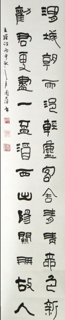 周萍的書(shū)法用多元素綜合而成,形成了獨(dú)特的藝術(shù)特征,他書(shū)寫(xiě)得心應(yīng)手,余裕有余之感從,是書(shū)者苦心經(jīng)營(yíng)精工雕琢積極成果,筆下書(shū)法達(dá)到氣息強(qiáng)勁,圓熱豐潤(rùn),和剛健之美達(dá)到視覺(jué)之美。