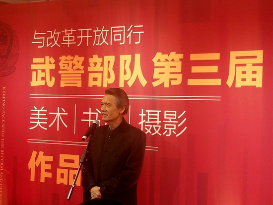 武警部隊政治工作部副主任李吟宣布展覽開幕