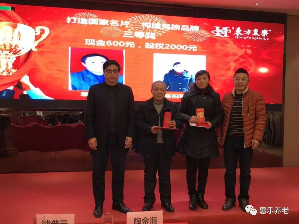 年會上,東方惠樂董事長陶金海作“凝心聚力構(gòu)建命運(yùn)共同體,搶抓機(jī)遇共譜成功新篇章”主題演講。陶金海董事長告訴全體伙伴,2018年東方惠樂目標(biāo)是給服務(wù)老人插上堅(jiān)實(shí)的翅膀,給創(chuàng)業(yè)伙伴帶來健康快樂和財(cái)富。他強(qiáng)調(diào)東方惠樂人需要適應(yīng)新時(shí)代要求,開拓思維,在變化中求發(fā)展。他指出企業(yè)成功核心要素是構(gòu)建起價(jià)值循環(huán)閉環(huán),東方惠樂的閉環(huán)是全面構(gòu)造“資本助力+實(shí)體服務(wù)+科技支撐”體系,個(gè)人成功要素是建立股權(quán)合伙人共贏機(jī)制;陶金海董事長通過六個(gè)核桃的案例強(qiáng)調(diào),任何一個(gè)企業(yè)發(fā)展、壯大,背后都是有一群“萬眾一心”的團(tuán)隊(duì)在為之貢獻(xiàn)力量。陶金海董事長在講話中指出,股東、合伙人的共同任務(wù)是做大市值,業(yè)績是生命線。對于能夠完成任務(wù),每月為公司創(chuàng)造正利潤者需要再接再厲;對于未完成任務(wù)者奮起直追共創(chuàng)輝煌!陶金海董事長在2018年規(guī)劃中指出,2018年,總部發(fā)展要素是“創(chuàng)新、改革”,希望全體同仁加入到改革、創(chuàng)新洪流中,不要被新形勢、新經(jīng)濟(jì)淘汰;同時(shí)他希望,全體東方惠樂人要把孝愛植入心田,讓孝愛行為成為習(xí)慣,以此構(gòu)建企業(yè)核心價(jià)值觀,共同打造國家名片、構(gòu)建民族品牌。