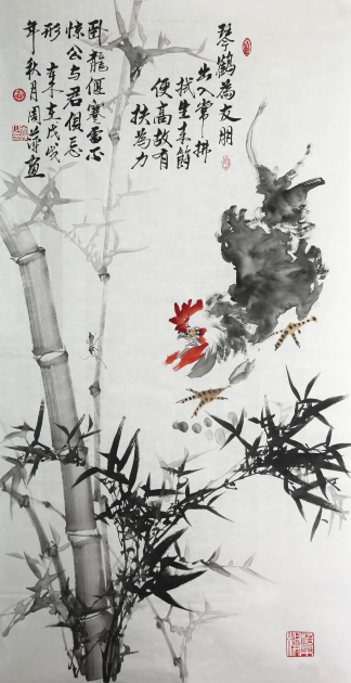 周萍的花鳥作品筆意新穎,筆墨酣暢,意隨心到,富有情趣。筆下石榴等也一一入畫,極富生活氣息。作品色墨并用,渾厚蒼勁,再配以畫上所題寫的真趣盎然的詩文和灑脫的書法相得益彰。