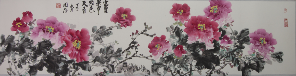 2016年11月11日四尺整張“富貴吉祥”寫意牡丹作品捐贈給“中華慈善總會慈善基金會”公益拍賣。