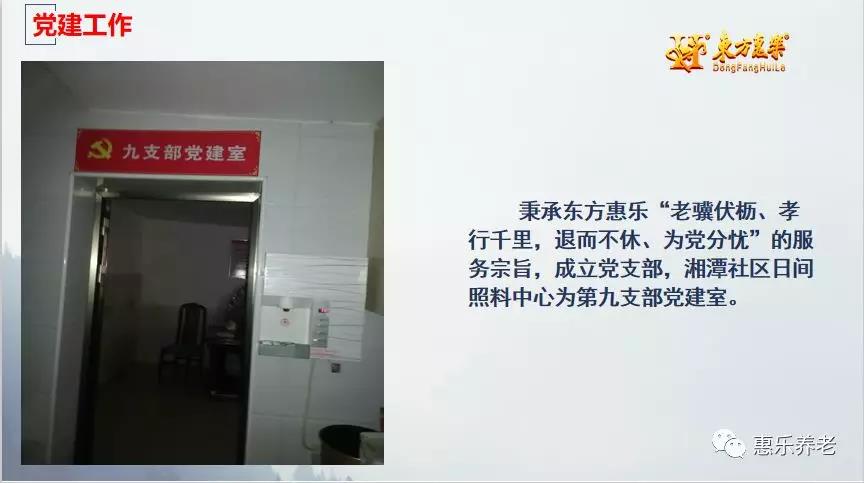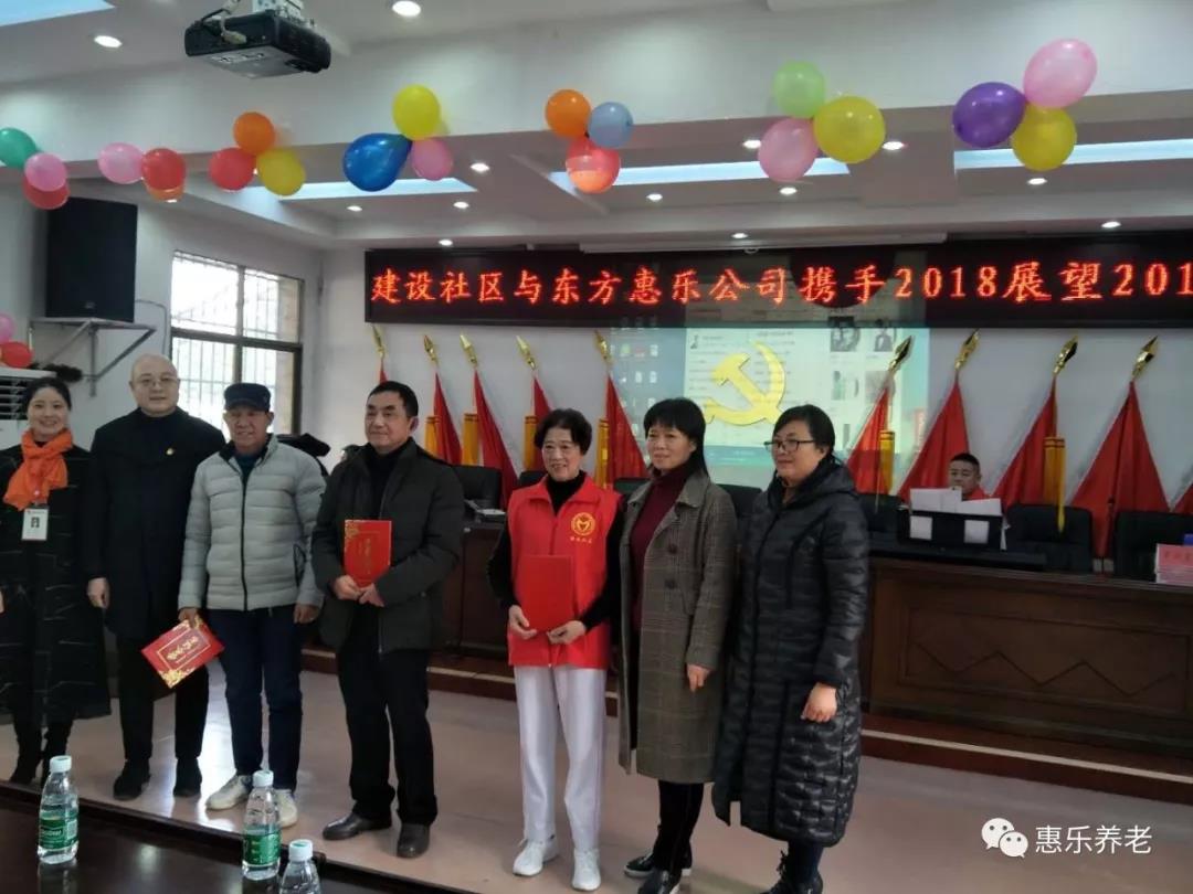 2019年1月23日,東方惠樂攜手湘潭建設(shè)社區(qū)舉行老年服務(wù)中心周年慶暨建設(shè)社區(qū)主題黨日活動(dòng)表彰聯(lián)歡會(huì)。湘潭市廣場(chǎng)街道黨工委書記黃衛(wèi)星,湘潭市雨湖區(qū)民政局福慈股股長(zhǎng)黃夕恍,湘潭市雨湖區(qū)計(jì)生協(xié)會(huì)會(huì)長(zhǎng)譚麗君,湘潭市雨湖區(qū)紅十字會(huì)會(huì)長(zhǎng)彭愛武,雨湖區(qū)建設(shè)社區(qū)第一書記、區(qū)委宣傳部正科級(jí)干部陳艷紅,湘潭市民政局社管科培訓(xùn)中心主任劉勇,雨湖區(qū)建設(shè)社區(qū)書記陶勇,東方惠樂董事長(zhǎng)陶金海,東方惠樂弘孝創(chuàng)新事業(yè)中心副總裁兼長(zhǎng)株潭事業(yè)中心總監(jiān)左重陽(yáng)等出席活動(dòng)。