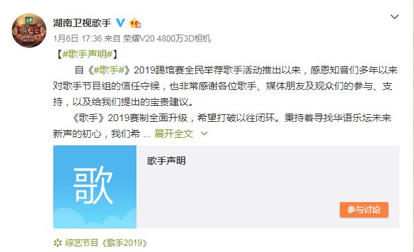 已經走過六個年頭的湖南衛視《歌手》正式官宣,將在全新的一年,以嶄新的賽制于1月11日22:00正式和大家見面。隨之節目組也公布了首輪唱演嘉賓:劉歡、齊豫、楊坤、吳青峰、張芯、逃跑計劃樂隊、KistianKostov,從名單來看,首輪7人的實力都不容小覷,未來的比賽,可謂是真正的“神仙打架”!